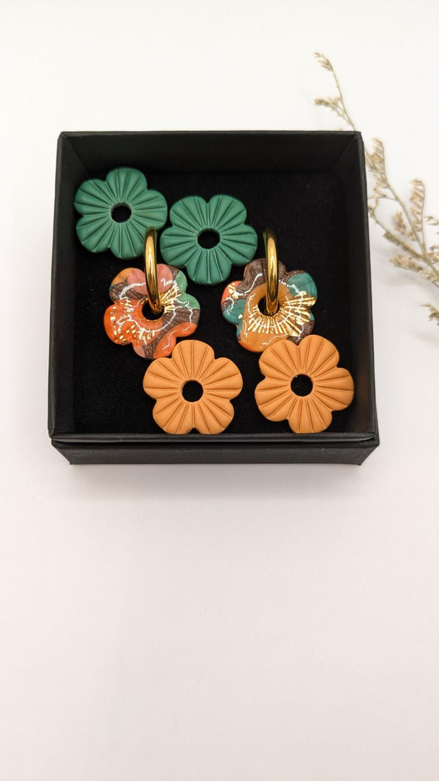 Boucles d'oreilles en pâte polymère - trio fleurs