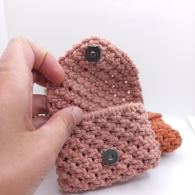 Petite pochette réalisée en macramé, doublée à l intérieur. Pour mettre quelques sous, cartes de crédit ou bien importe quel trésor!